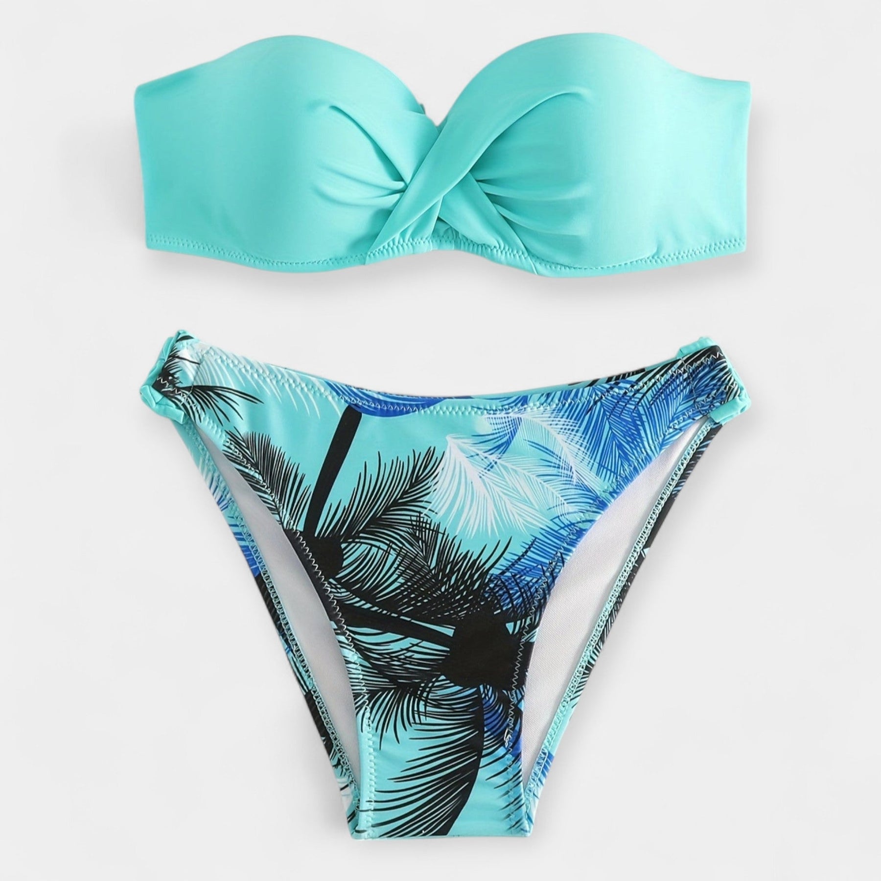 This stunning two-piece bikini combines exotic style and bold femininity. With striking floral patterns, tie-up detailing, and an open back, it accentuates the silhouette and offers a modern look for any summer occasion.