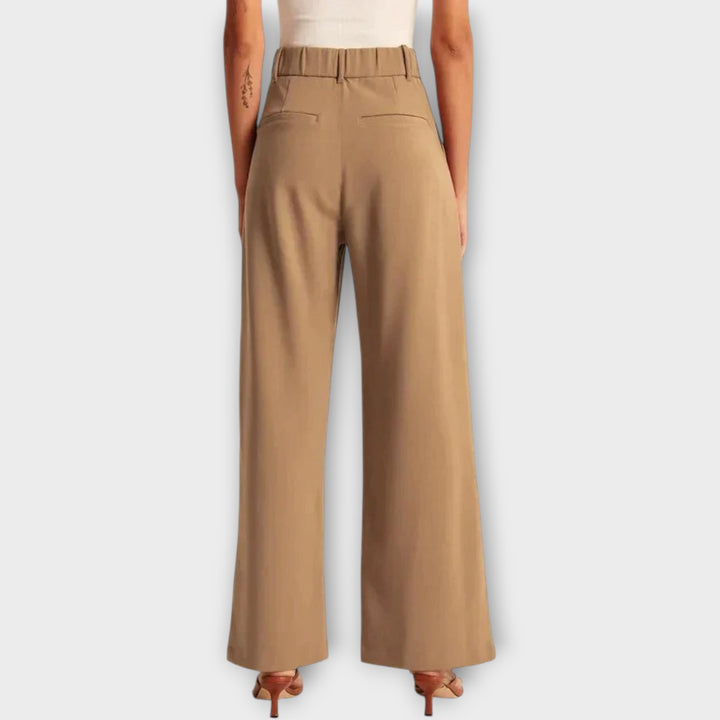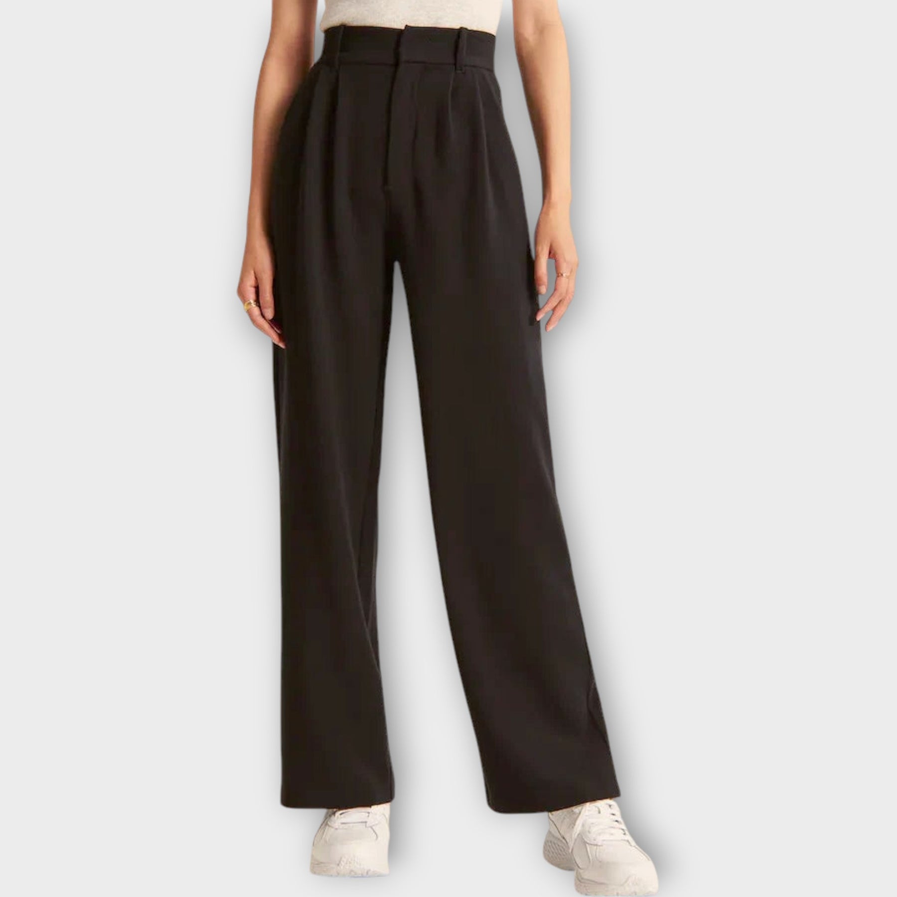Step into everyday elegance with these high-waist tailored pants. Designed with a sleek, elongated silhouette and gentle pleats, they offer a flattering fit that enhances your natural shape. The wide-leg cut adds a touch of sophistication while providing effortless movement, making them perfect for both work and off-duty styling.