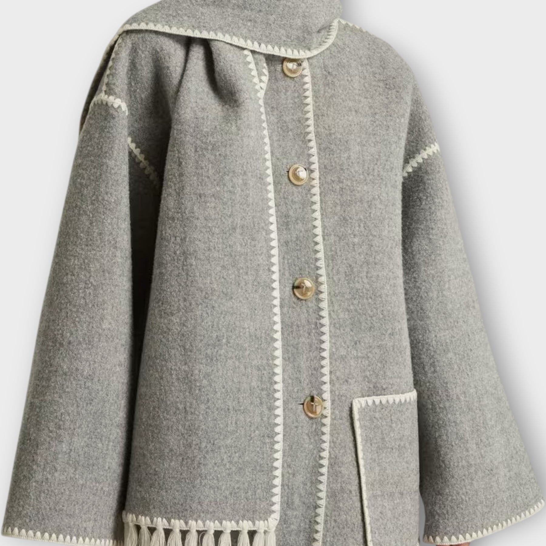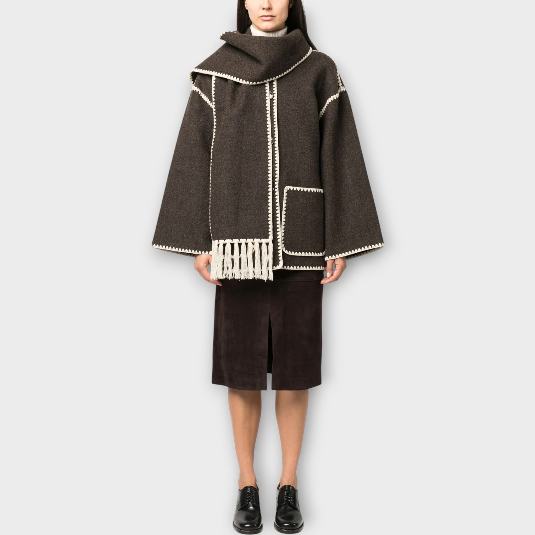 Wrap yourself in effortless style with the Alto Scarf Jacket. Designed with a soft, warm fabrication and a vintage-inspired silhouette, this piece turns heads with its built-in scarf detail—an elegant twist on your everyday outerwear. Perfect for layering, it blends comfort and sophistication for a chic cold-weather look.
